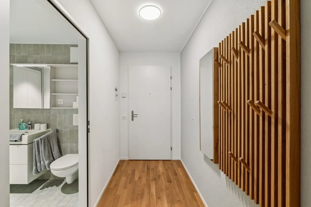 Die Wohnungen an der Hofackerstrasse verbinden urbanes Wohnen mit entspannter Leichtigkeit. Hier lässt sich die Nähe zur Stadt Basel ebenso geniessen wie die kurzen Wege ins Grüne.