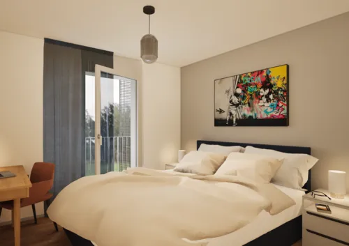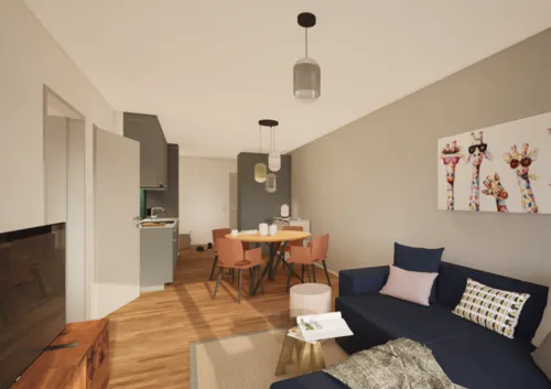 Die Wohnungen an der Hofackerstrasse verbinden urbanes Wohnen mit entspannter Leichtigkeit. Hier lässt sich die Nähe zur Stadt Basel ebenso geniessen wie die kurzen Wege ins Grüne.