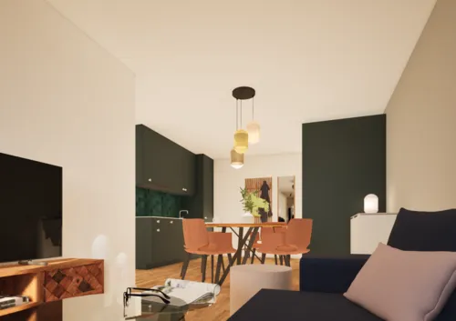 Die möblierten Wohnungen fangen das bunte Flair Lissabons ein: Warme Terracotta-Töne, kräftiges Dunkelblau, verspielte Rosa-Akzente und schlichte, urbane graue Akzentwände treffen auf lebendige Bilder und moderne Leuchten. So entsteht eine einzigartige Atmosphäre, die urbanen Komfort mit klarer Leichtigkeit verbindet – perfekt, um sich sofort zuhause zu fühlen und täglich ein Stück Lebensfreude zu geniessen.