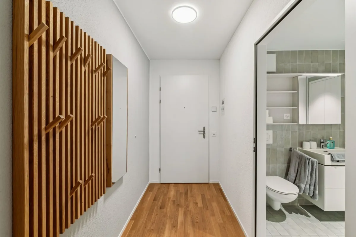 Die Wohnungen an der Hofackerstrasse verbinden urbanes Wohnen mit entspannter Leichtigkeit. Hier lässt sich die Nähe zur Stadt Basel ebenso geniessen wie die kurzen Wege ins Grüne.