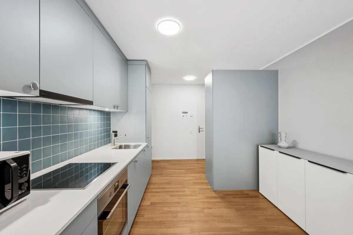 The modern campus of the University of Applied Sciences Northwestern Switzerland (FHNW) is right nearby, giving the neighbourhood a young, vibrant feel. Shops, a bakery, cafés and restaurants are all within easy walking distance. Schools, kindergartens, sports facilities and nearby green spaces like the Hardwald forest or the historic Wartenberg ruins invite you to relax and unwind.