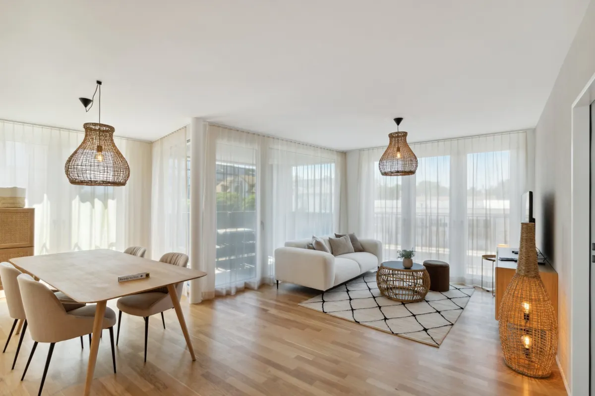 The property is located directly at the Münchenstein train station. Basel main station can be reached in 7 minutes by S-Bahn. The traffic connections by car are optimal.