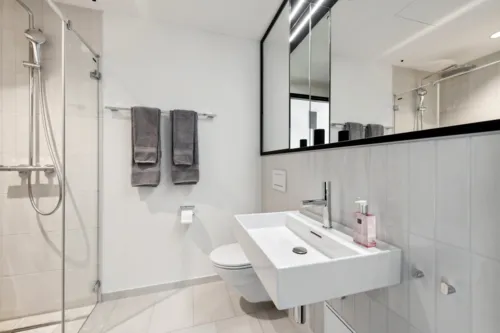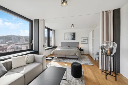 The newly built Akara Tower in 2023 is located in the charming city center of Baden, directly on the car-free Brown-Boveri Square. In the immediate vicinity, you will find numerous practical amenities such as a cinema, supermarkets (open until 9:00 PM at the train station), Starbucks, co-working spaces, various restaurants, and much more.
