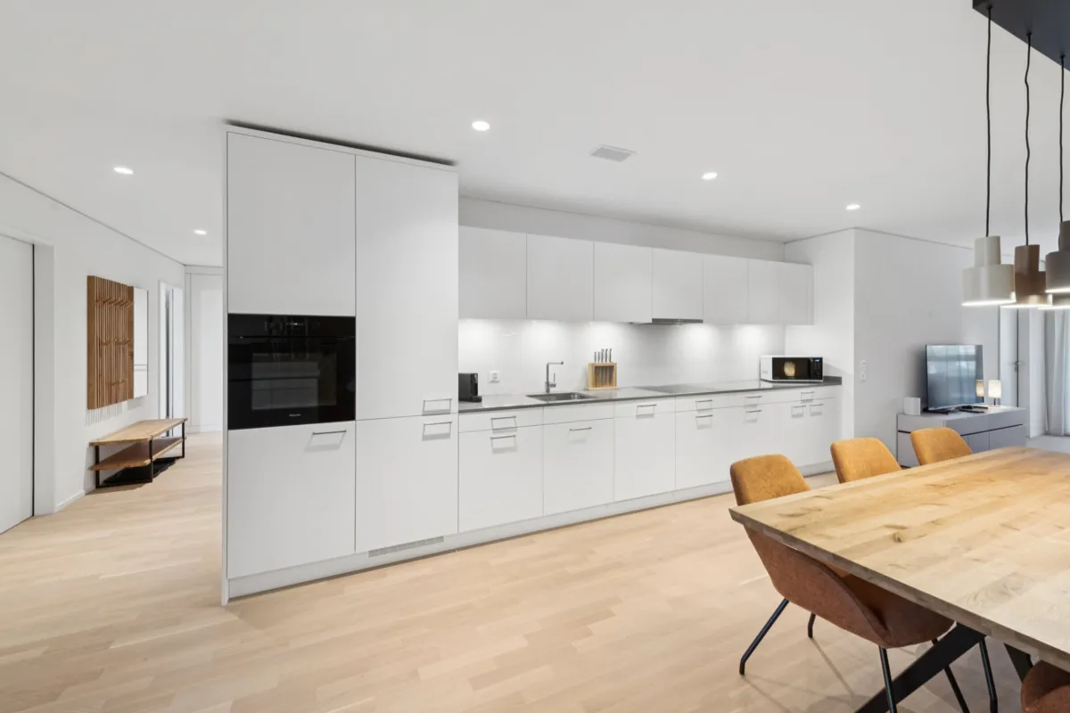 The location of the elron club Apartments at Tivoli Garden near Zurich combines urban convenience with peaceful proximity to nature. Situated directly within Switzerland's largest shopping center, Shoppi Tivoli, residents enjoy a wealth of shopping, leisure, and dining options right on their doorstep.