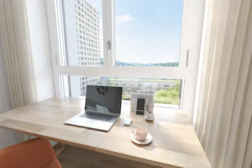 The location of the elron club Apartments at Tivoli Garden near Zurich combines urban convenience with peaceful proximity to nature. Situated directly within Switzerland's largest shopping center, Shoppi Tivoli, residents enjoy a wealth of shopping, leisure, and dining options right on their doorstep.